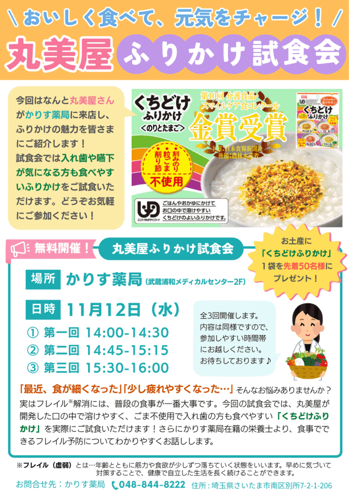 11/12(水) かりす薬局「丸美屋ふりかけ試食会」開催のお知らせ
